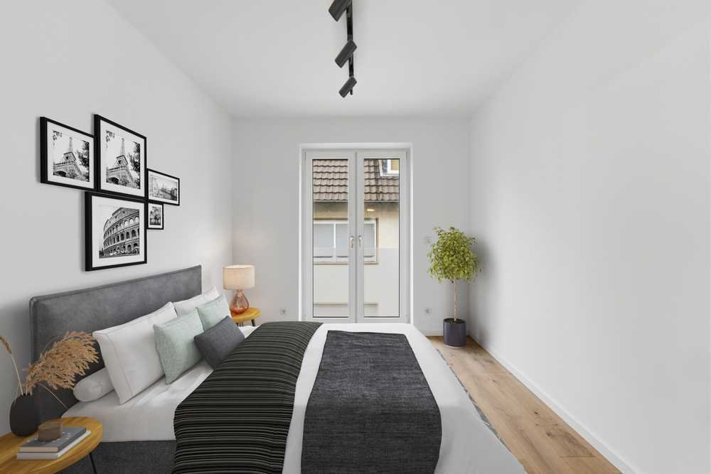 Diese ca. 53 m² große 2-Zimmer-Wohnung im 2. Obergeschoss des Haupthauses von Seufert25 überzeugt durch ihre helle Ausrichtung zur Straßenseite und einen klar strukturierten, modernen Grundriss. Der offene Wohnbereich mit integrierter Küchenzeile vermittelt ein luftiges Wohngefühl und bietet direkten Zugang zum Balkon, der Platz für entspannte Momente im Freien schafft.