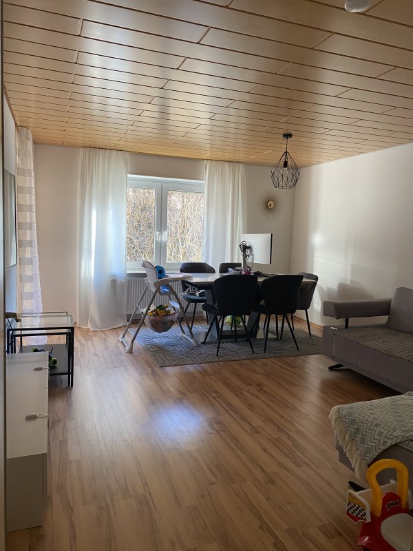 3-Zimmer Wohnung befindet sich, umgeben von viel Grün am Stadtrand von Bad Urach. Einkaufsmöglichkeiten sind in weniger Minuten mit dem Auto zu erreichen. Wohnzimmer und Schlafzimmer haben Zugang zum Balkon. Kind - Zimmer mit Fenster.