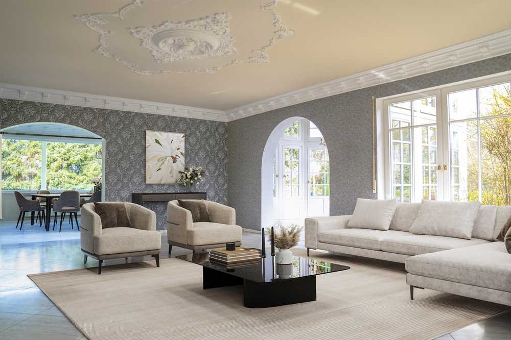 Im Erdgeschoss erwarten Sie eine moderne Wohnküche mit Frühstückstresen, ein Arbeitszimmer sowie ein Gäste-WC. Das Herzstück bildet das ca. 50 m² große Wohnzimmer mit Kamin, edlen Marmorböden und Zugang zum angrenzenden Esszimmer und zum imposanten Wintergarten im Turmdesign mit über 5 m Deckenhöhe.