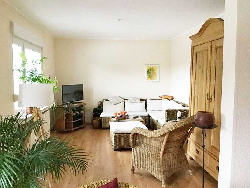 Ursprünglich war das jetzige Esszimmer, bzw. zweites Wohnzimmer, ein abgeschlossener Raum für sich, welcher jedoch in der Vergangenheit baulich zum Wohnzimmer geöffnet wurde. Mit geringem Aufwand kann dieses Zimmer jedoch zurück gebaut werden, sodass hier ein weiteres Schlafzimmer oder ein Arbeitszimmer entstehen kann.