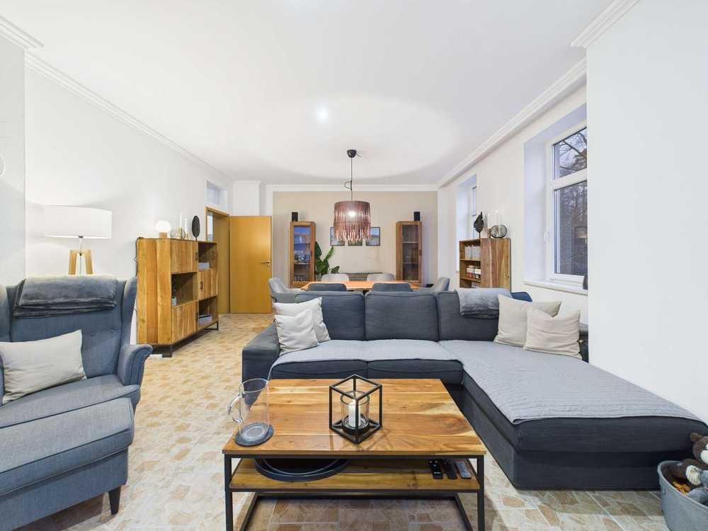 Entdecken Sie eine außergewöhnlich schön modernisierte Etagenwohnung, die mit ihrer stilvollen Ausstattung und durchdachten Raumaufteilung sofort begeistert. Auf großzügigen 140 m² Wohnfläche erstrecken sich vier einladende Zimmer, darunter zwei helle Schlafzimmer sowie ein flexibel nutzbares Büro- oder Gästezimmer. Ein modernes Bad sowie ein separates Gäste-WC ergänzen den hohen Wohnkomfort. Die Wohnung liegt im 1. Obergeschoss eines gepflegten Gebäudes und wurde zuletzt 2023 umfassend modernisiert. Trotz der Lage im Obergeschoss haben wir keine Schrägen und eine Deckenhöhe von über 2,80 m, was ein wunderbares Wohngefühl verleiht.