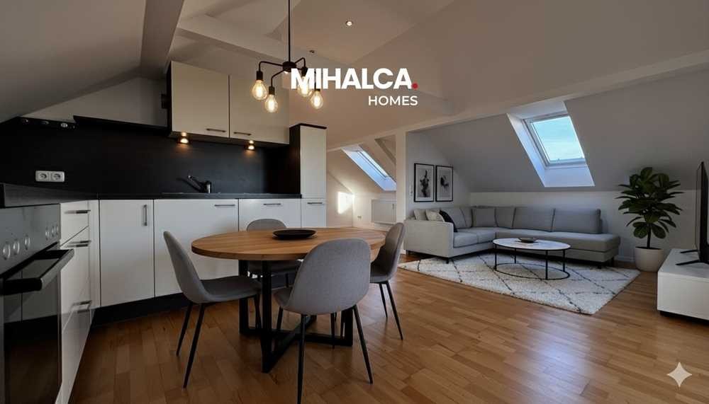 Herzstück der Wohnung ist der großzügige Wohn-/Ess- und Kochbereich mit rund 37 m². Durch die offene Gestaltung, die sichtbaren Holzbalken und die gemütlichen Dachschrägen entsteht ein besonderer Wohncharakter – ideal für alle, die Weite und Behaglichkeit kombinieren möchten. Von hier aus gelangen Sie direkt auf den Balkon, der den Wohnraum nach außen erweitert und Platz für eine kleine Sitzgruppe bietet.