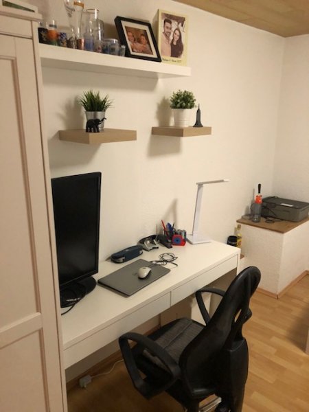 Unsere WG befindet sich in einem Einfamilienhaus. Das Zimmer ist im oberen Stockwerk und hat ca. 15 qm mit Ausblick auf die umliegenden Felder. Wir haben zwei Badezimmer (eins im EG und eins im OG), eine gemeinsame Küche in der wir oft zusammen sitzen und Karten spielen und einen gemütlichen Keller mit Sofa und Bierpongtisch. :) Außerdem teilen wir uns mit unseren Nachbarn einen Garten mit vielen Apfelbäumen. Zurzeit wachsen dort auch Tomaten und Zucchinis, es ist aber auch genug Platz für weiteres Gemüse.