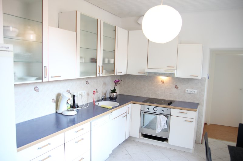 Das Haus verfügt über 3 Etagen, wobei jede Etage ein eigenes Badezimmer hat. Im Erdgeschoss sind 3 Zimmer, Bad und Küche, auf der 1. Etage 2 Zimmer, Bad und Küche und im Dachgeschoss 2Zimmer sowie ein eigenes Badezimmer, d.h. die Bewohner/innen des Dachgeschosses nutzen eine der anderen beiden Küchen mit. Eine Miele-Waschmaschine stehen ebenfalls zur Verfügung. Es gibt Internet im Haus, das ebenfalls enthalten ist.