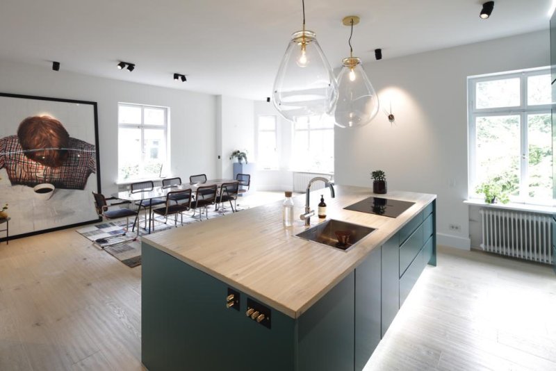 Die maßeingebaute Küche verfügt über die neusten Küchengeräte mit den neusten Technologien.