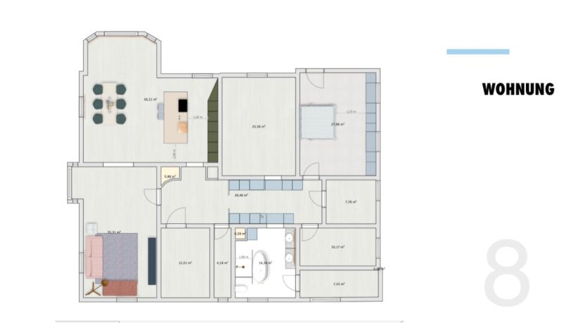 Die Wohnung befindet sich im 1. Obergeschoss eines der stilvollsten Altbaus in Bad Cannstatt. Sie besticht vor allem durch ihre ästhetische Ausstattung.