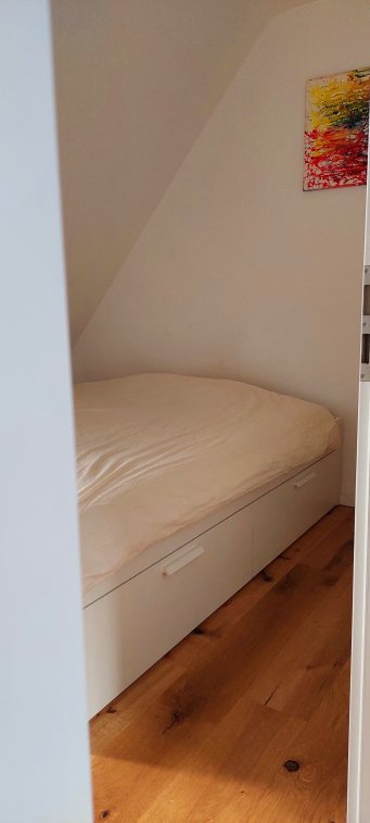 Der Essbereich ist auch als Arbeitsbereich nutzbar oder das separate Ankleidezimmer bietet einen Arbeitsplatz. Das Schlafzimmer hat ein 160x200cm großes Bett und ist durch die Tür gut abzudunkeln. Das Ankleidezimmer bietet eine Option für einen kleinen Arbeitsbereich. Die Küche ist voll ausgestattet, WaMa, Bügeleisen, Bügelbrett, Staubsauger - alles vorhanden. Inkl. idyllischem, ruhigen Gemeinschafts-Garten. Geräumiger Stauraum Dachboden und Keller vorhanden. 2.Bett alternativ. Heizkostenabschlag inkl.