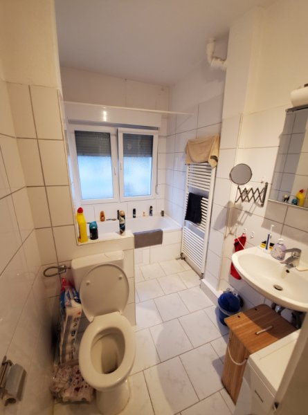 Die Wohnung befindet sich im 1. OG. Die komplette Wohnung ist ohne Dachschräge.