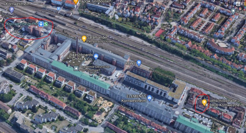 Die Immobilie befindet sich in belebter Wohnlage in Kornwestheim. Nahe gelegen gibt es mehrere Buslinien und die Bahnlinien RB11, S4 und S5, die Sie mit regionalen und überregionalen Zielen verbinden. In direkter Umgebung finden Sie einige Restaurants, Bäckereien, Supermärkte, Cafés und einen Arzt vor. Rauchen nicht erwünscht.