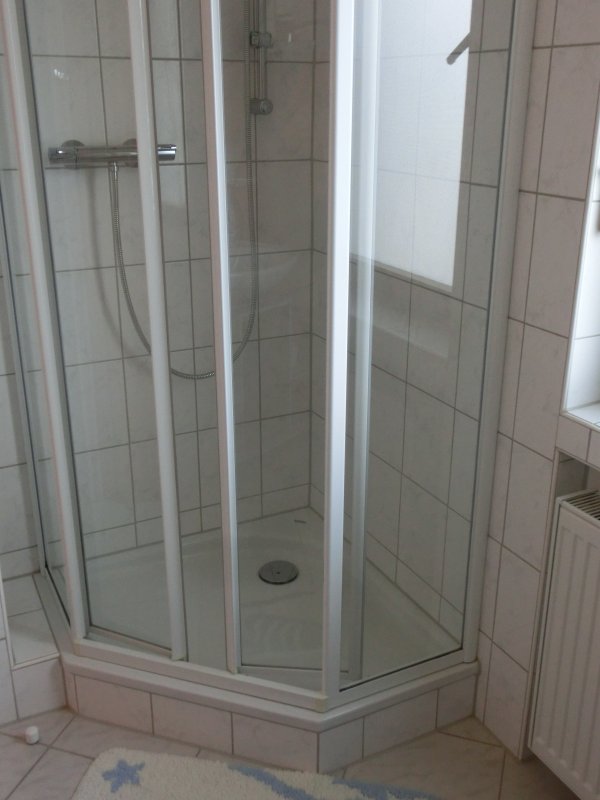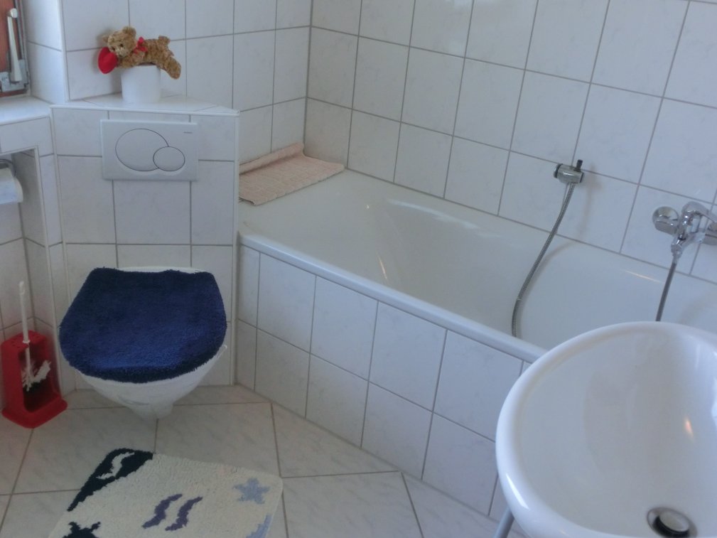 Badewanne, Dusche, WC und Fenster. 1. OG in einem Zweifamilienhaus, ruhige Lage. Öl-Zentralheizung mit