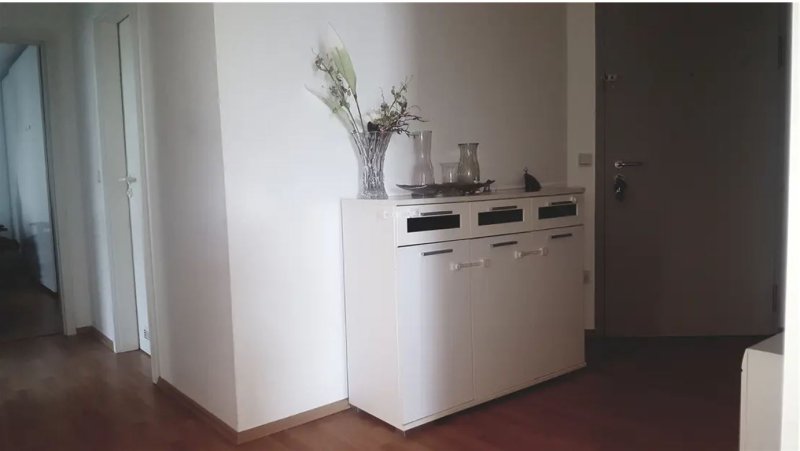 Die Wohnung ist komplett mit Raufasertapete ausgestattet.