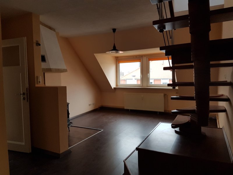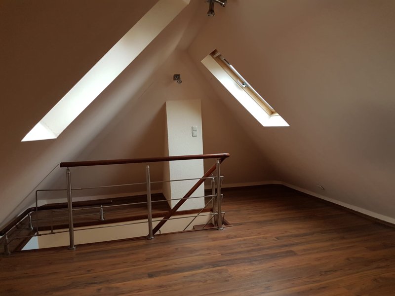 Kurzfristig freigeworden: Sehr helle und moderne Dachgeschosswohnung mit edler Wendeltreppe, Kaminofen, gemütlicher Wohnküche und sehr geräumigen und schönem Bad mit Eckbadewanne in einem charmanten Kaffeemühlenhaus aus den 1930ern mit Gartennutzung, Wasch- und Fahrradkeller sowie eigenem Kellerabteil.
