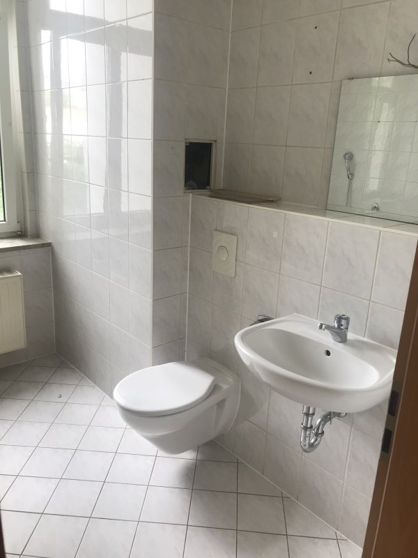 Die Wohnung verfügt über 4 Zimmer + separatem Essbereich neben der Einbauküche, ein Badezimmer mit Badewanne und WC und separatem Gäste-WC mit Dusche. Der Fußboden der Wohnung ist aus Laminat bzw. gefliest.