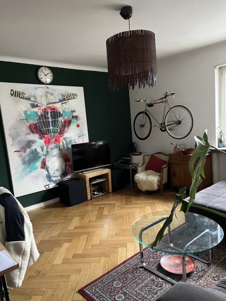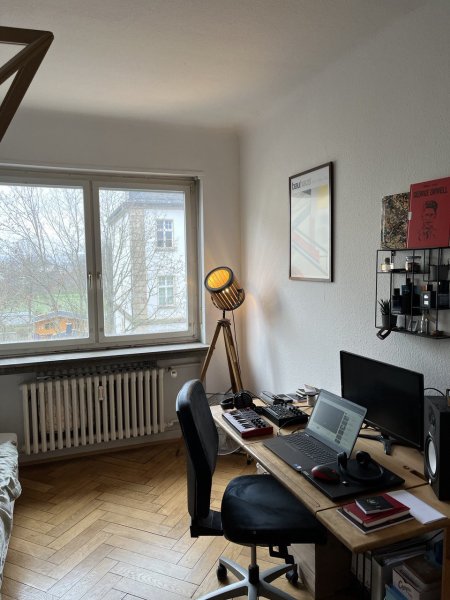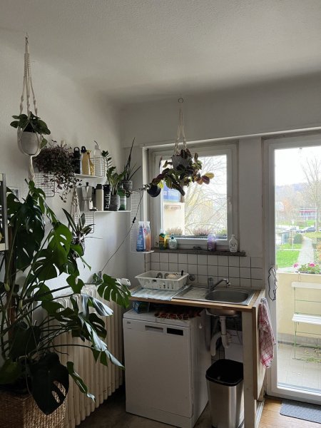 Die Wohnung ist im 2. Stock, hat eine recht große Küche sowie einen Balkon (Südseite). Rauchen ist NUR auf dem Balkon möglich, Wohnzimmer und Küche sind komplett eingerichtet. Es gibt einen Kellerraum und eine Waschküche.
