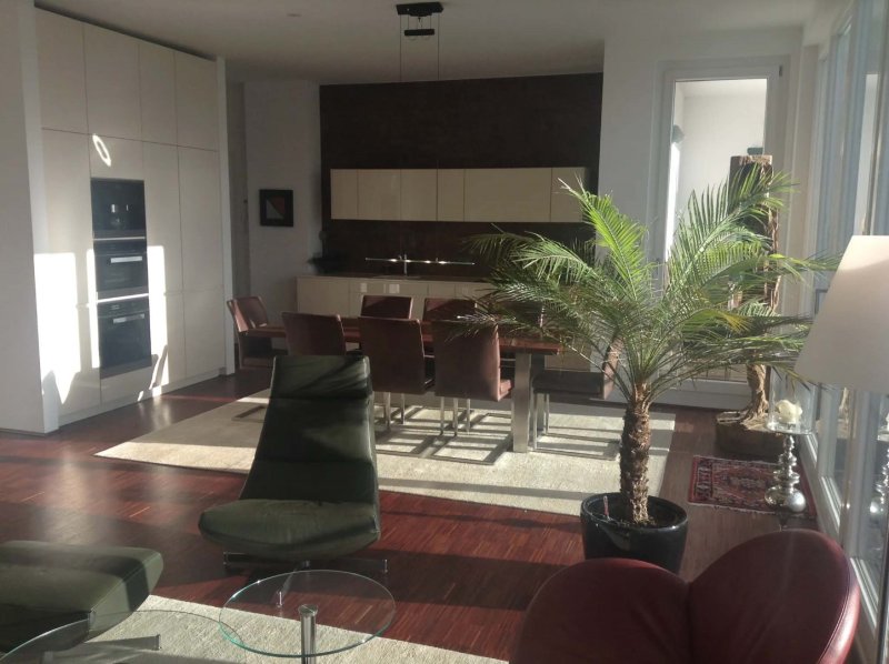 private Dachterrasse eröffnet ein Leben im Grünen, um sich zu sonnen, zu essen, zu entspannen oder einfach nachts die Sterne zu betrachten. Die komfortabel eingerichtete 3-Zimmer-Wohnung verfügt über eine zusätzliche Südterrasse. Die luxuriöse Ausstattung von Küche, Bädern, Wohn-, Arbeits- und Schlafräumen wird durch moderne technische Ausstattung wie Raumlüftung und hohen Schallschutz ergänzt. Neben der hochwertigen Ausstattung sorgen