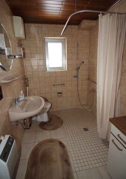 2 Bäder mit Dusche, eins im Erdgeschoss und im eins im Dachgeschoss. 2 Kellerräume, Waschmaschine und Dusche. neue Brennwertzentralheizung.