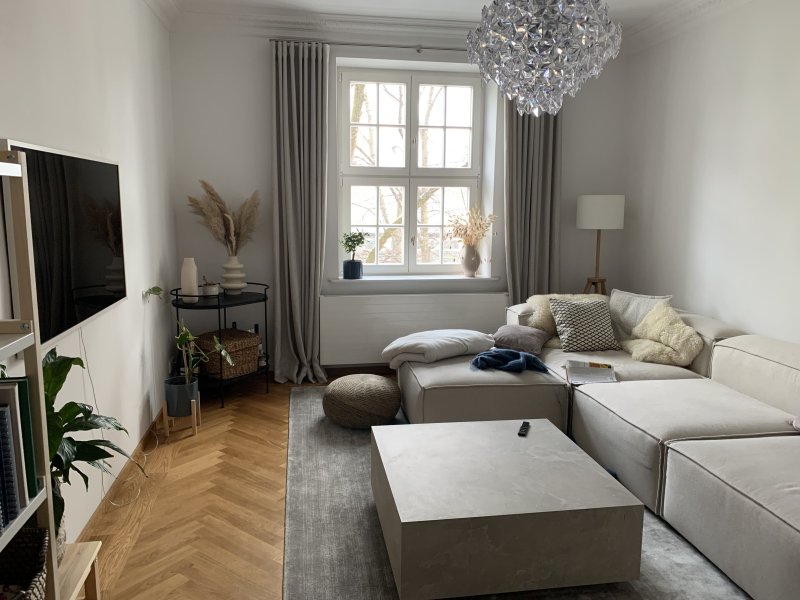 Es handelt sich um eine Altbauwohnung, die den ganzen Charme des Altbaus in sich vereint (Fischgrätenparkett, Sprossenfenster, Stuck an der Decke) und zudem im Jahr 2020 vollständig modernisiert. Die Wohnung ist hochwertig möbliert mit allem, was man im Alltag benötigt, inkl maßgeschreinerten Kleiderschränken im Schlafzimmer und maßangefertigten Vorhängen in Schlaf- und Wohnzimmer.