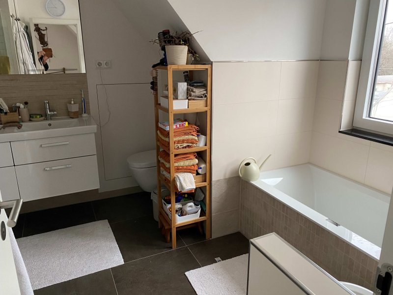 Außerdem gibt es ein eigenes Bad mit Badewanne.