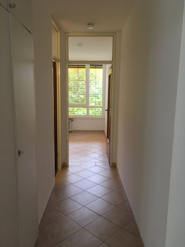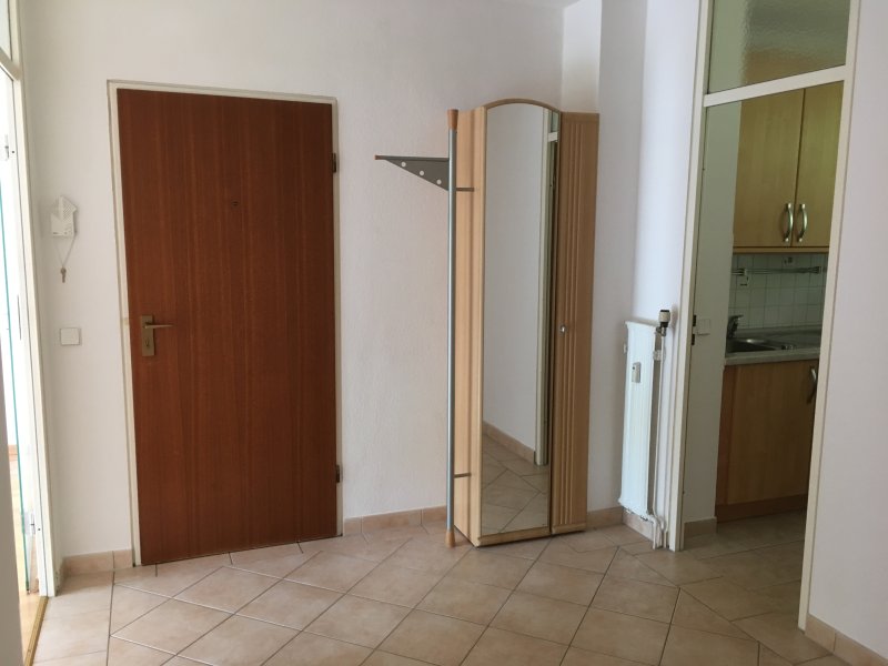 Die Wohnung befindet sich im 1. Stock eines Mehrfamilienhauses. Neben einem großen Wohnbereich mit Balkon in Südausrichtung, gibt es noch zwei weitere Zimmer. Von dem einen Zimmer geht ein Badezimmer mit Badewanne ab, das andere Badezimmer (mit Dusche) erreicht man über den Flur.