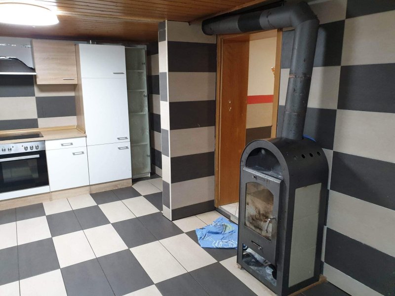 Im EG befindet sich ein offener Wohnbereich mit Küche, Esszimmer sowie einer kleinen Vorratskammer, Gäste-WC , ein Bad mit Dusche, Badewanne und Waschbecken, Stückholzheizung und 2 Hauswirtschaftsräume .