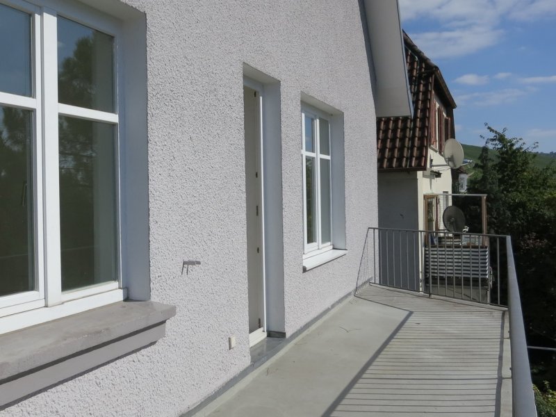 Von der Küche aus zugänglich ist eine Veranda, die einen tollen Ausblick auf die Weinberge und die Rotenberg-Kapelle bietet. Waschmachine im Bad vorhanden. Der Balkon, kann nach Absprache mit ihm mitgenutzt werden. Außerdem verfügbar und nutzbar: ein Garten und eine Terasse auf den Garagendächern unterhalb des Hauses.