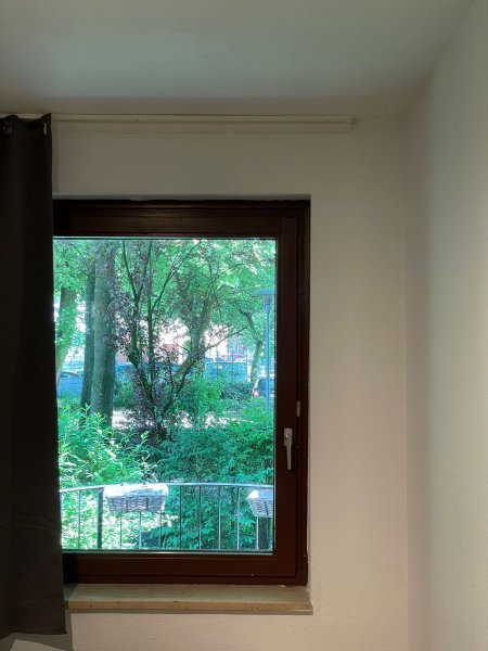 Was den Ausblick angeht, haben wir auf unserem Balkon eine richtig schöne Aussicht mit Bäumen, Gebüschen und Natur. Es ist einfach herrlich, dort Zeit zu verbringen.