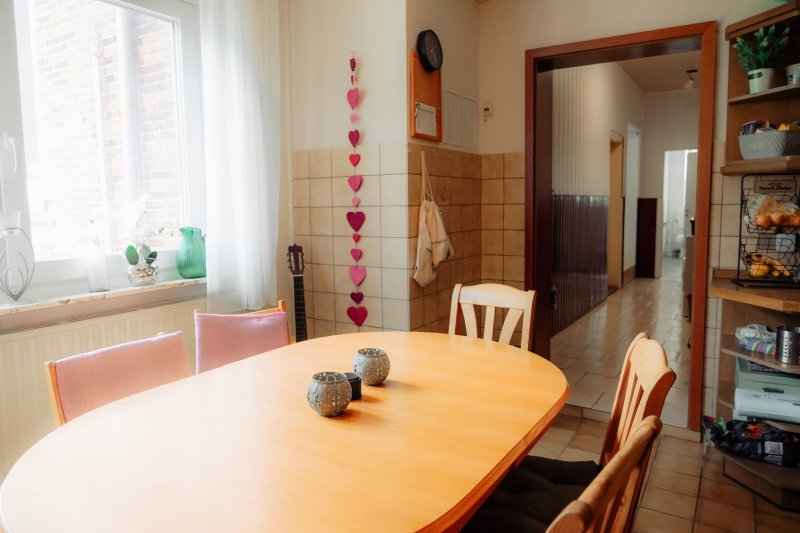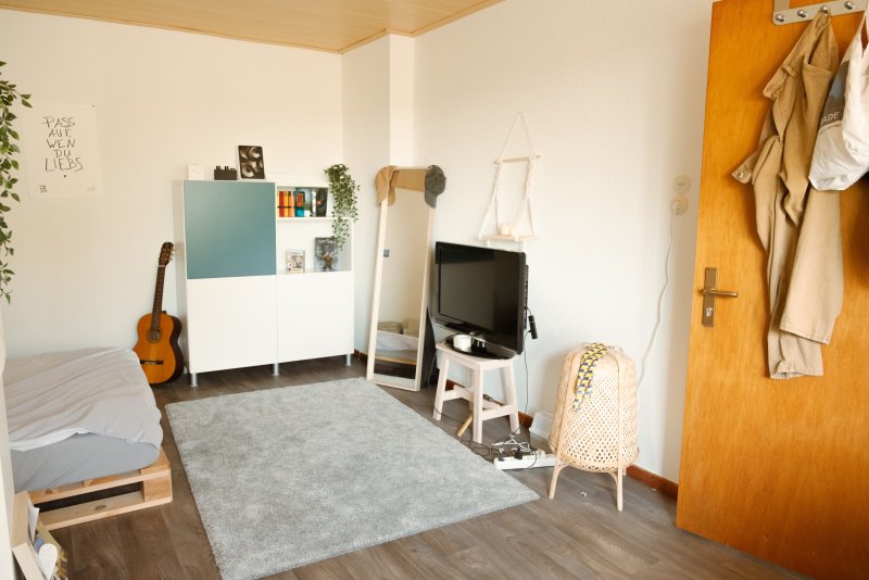 Die Küche ist der Treffpunkt unserer WG. Hier kochen wir gerne gemeinsam, spielen Gesellschaftsspiele, quatschen und stoßen ab und zu gemeinsam auf die gemeisterten Etappen des Studiums an. Wir freuen uns auf jemanden, der Lust auf WG-Leben hat, da wir uns nicht als Zweck-WG sehen. Natürlich hat hier auch jeder seinen Freiraum, wenn er/sie mal etwas Ruhe braucht.