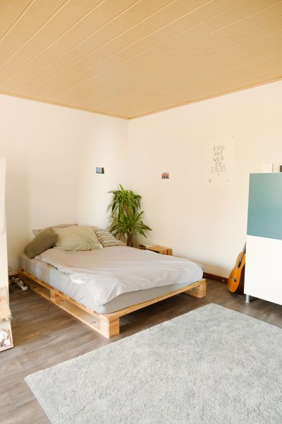 Das Zimmer ist im 1. OG und hat ein großes Doppelfenster nach Süden mit Blick über den Garten und die Weide auf der anderen Straßenseite. Die Straße vor dem Haus ist nicht stark befahren. Das Zimmer wird unmöbliert übergeben.