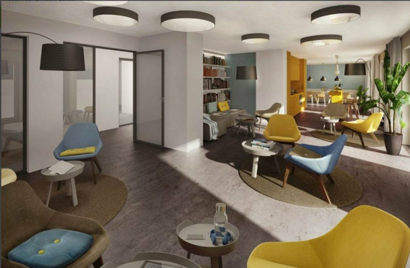 - Gemeinschaftsflächen, Lounge, Event-Küche, - Coworking Space, hauseigener Waschsalon,