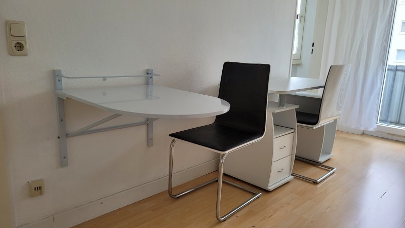 Vermietet wird Möbliert (siehe Bilder) Mit einem Luxus Bett der Marke Fenobett 140x200, Sony 40 Zoll TV, Leder Sessel ausfahrbar, Schrank + 2 Wand Schänke, Schreibtisch, 2 Stühle, Kleiner aufklappbarer Esstisch, Kleine Küche mit Küchenzeile, Kaffeemaschine, Mikrowelle, Toaster etc.