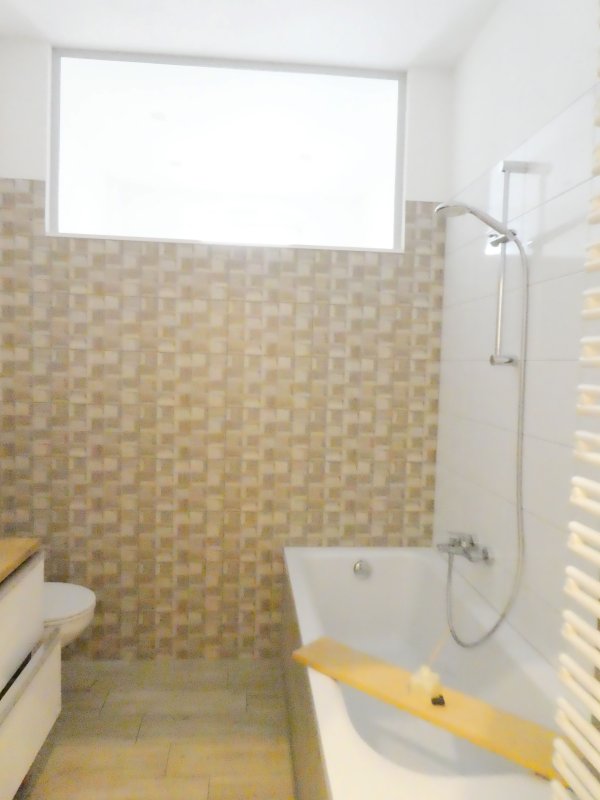 - Badezimmer mit Lichtschacht und Badewanne
