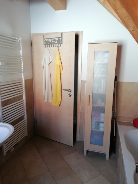Bad mit Dusche Badewanne und zwei Waschbecken