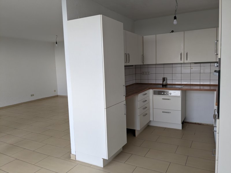 Es sind zwei gleichgroße Räume und ein offener Wohn-Essbereich vorhanden. Die Küche ist zum Essbereich offen gestaltet. Die Einbauküche ist im Mietpreis inbegriffen, hier befinden sich ebenfalls Anschlüsse für eine Waschmaschine, eine Spülmaschine und einen Kondenstrockner. Die Tür zur Loggia befindet sich im Anschluss zum Essbereich/ Wohnbereich. Durch die breite Fensterfront und von der Loggia haben Sie einen tollen Blick ins Grüne. Die Böden aller Räume sind gefliest und die Wände sind weiß gestrichen.