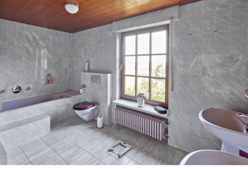 - 1 Tageslichtbad mit Wanne, offene Dusche, Doppelwaschbecken, WC