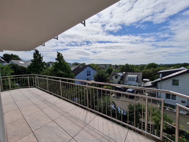 Highlight der Wohnung ist sicher der riesige Aussichtsbalkon, der durchgehend hinter Wohn- und Schlafzimmer entlang verläuft und aus beiden Zimmern betretbar ist. Von hier aus hat man dank der Hanglage einen phänomenalen Blick über Leverkusen und Köln inklusive Dom.