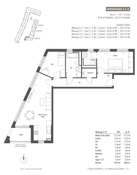 November 2023 an. Die Wohnung hat eine Wohnfläche von 85,49