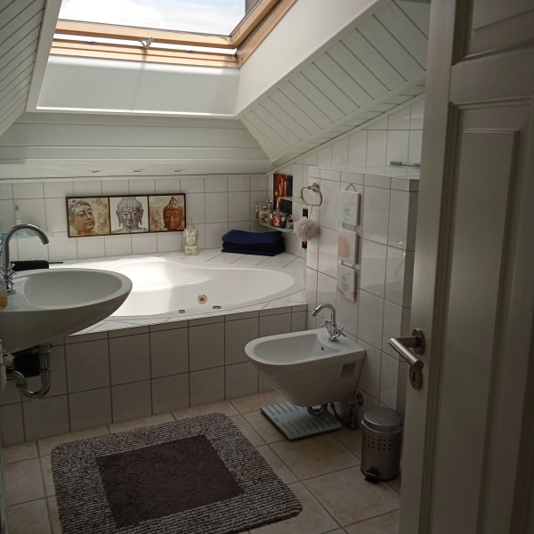Bad mit Whirlpool, Dusche, Bidet und Fenster