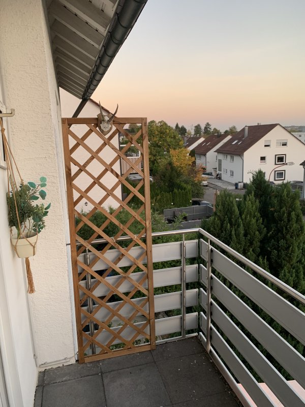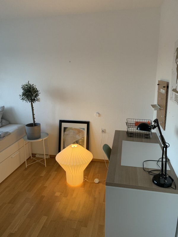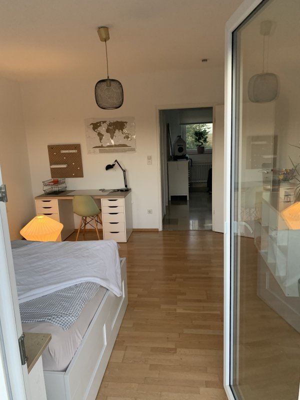 Mitbenutzung Küche, Esszimmer, Bad und Gäste-WC, Garten und Terrasse. Zimmereigener Balkon mit Palettensitzplatz. Separater Büroraum mit Schreibtisch und Drucker (Scanner) zur Mitbenutzung.