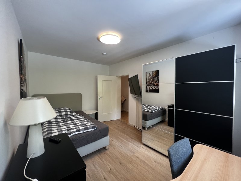 Das Zimmer wird möbliert vermietet. In den Zimmern sind bereits jeweils ein großer Kleiderschrank, Nachttisch, Schreibtisch, Doppelbett, Fernseher und Lampen vorhanden.