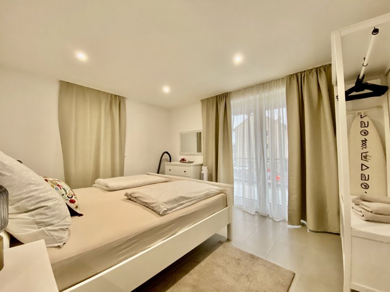 Das Schlafzimmer bietet ausreichend Platz und Verstaumöglichkeiten dank dem vorhandenen Kleiderschrank.