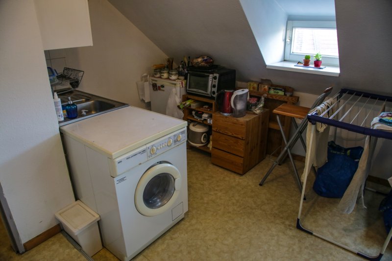 möbliert mit Waschmaschine, Kühlschrank und Mikrowelle