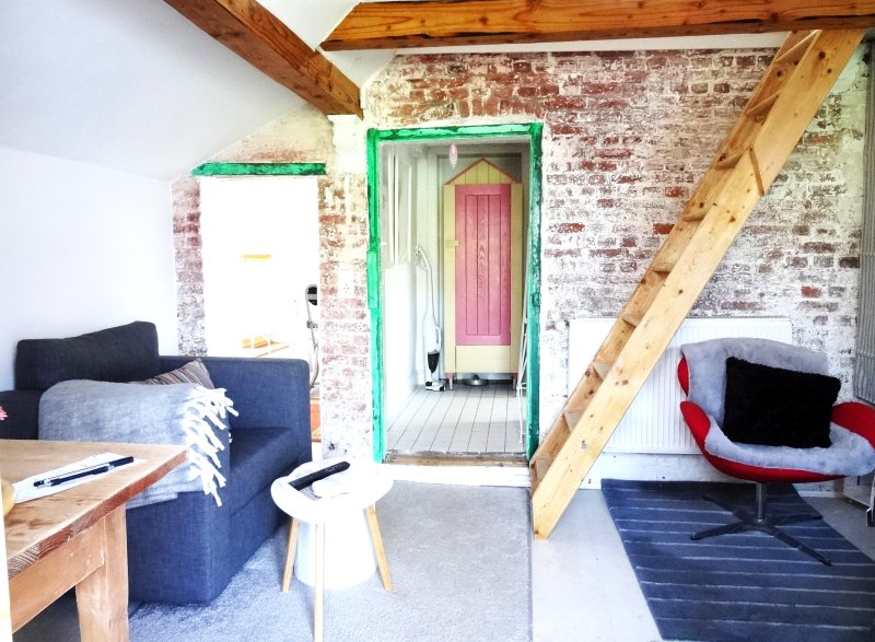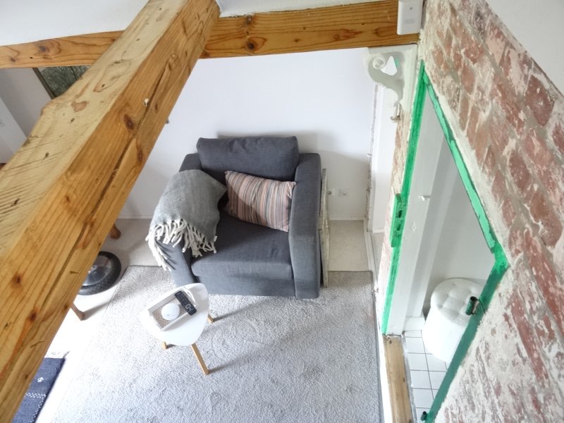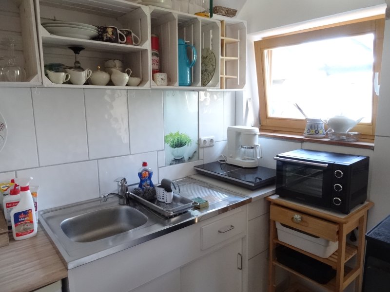 Zu vermieten ist eine kleine, neu renovierte Ferienwohnung ( deshalb "auf Zeit", da im Frühjahr/Sommer schon Buchungen vorliegen. ) Sie hat einen eigenen Eingang, eine überdachte Terrasse und, falls es mal kalt werden soll und man es besonders gemütlich haben möchte, hat sie einen Holz/Kohleofen mit Außenschornstein. Geheizt wird ansonsten mit Gas, Bad mit Dusche, neue Waschmaschine und Küchenzeile mit Kühlschrank , Backofen und Induktionskochplatte sind vorhanden. Ein kleines Büro steht in einem mini- Nebenzimmer bereit mit Glasfaseranschluss. Fernseher und alle anderen Annehmlichkeiten sind vorhanden. Oben, unterm Dach, wie in einem Zelt, gibt es ein gemütliches Doppelbett, von dem aus man in die Sterne gucken kann. Unten steht ein Schlafsessel zur Verfügung, falls die " Schwiegermutter" mal zu Besuch kommt. Man kann in dieser kleinen, entzückenden Wohnung gut zu zweit wohnen. Haustiere sind nicht erlaubt, weil im anderen Haus schon ein großer lieber Hund und vier Katzen ihre Reviere beanspruchen. Die Wohnung liegt in einem Hausanbau und wirkt wie ein kleines, eigenes Haus in einem großen Garten. In den Nebenkosten sind Strom und Heizung/Gas mit enthalten. Auf Wunsch werden Bettwäsche und Handtücher gegen Aufpreis gestellt.