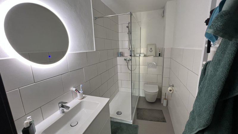 - Badezimmer mit begehbarer Dusche