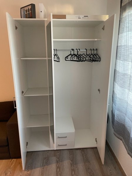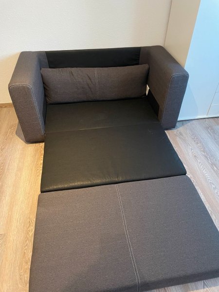 Voll möbliert, Küche ausgestattet mit Herd, Kühlschrank, Mikrowelle, Bad mit Dusche, Schlafcouch, Laminat,Doppelbett.