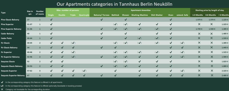 Preise variieren je nach Aufenthaltszeitraum und Mietdauer. Nach Ablauf des Mietvertrages sind Neuverträge für die Verlängerung des Aufenthaltes möglich.