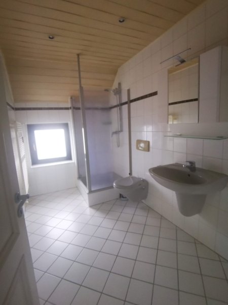 Das helle Tageslichtbad verfügt über eine Dusche sowie über einen Spiegelschrank.