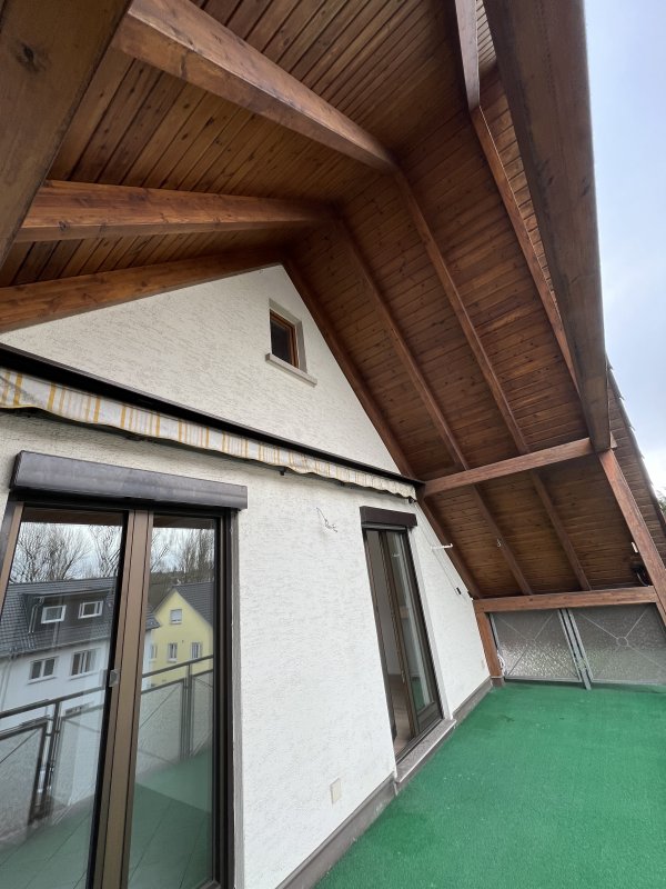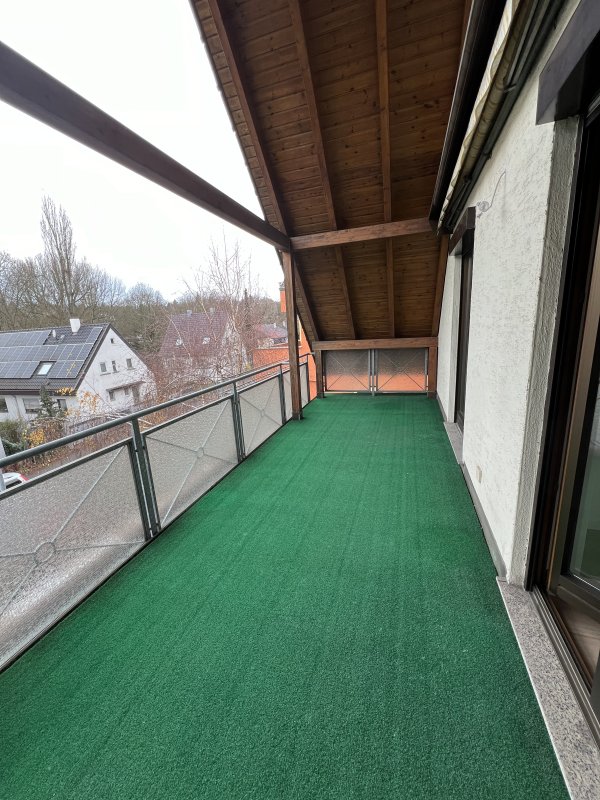 Ein Highlight ist der große, überdachte Balkon mit schönem Blick auf den Garten – perfekt zum Entspannen nach einem langen Tag.