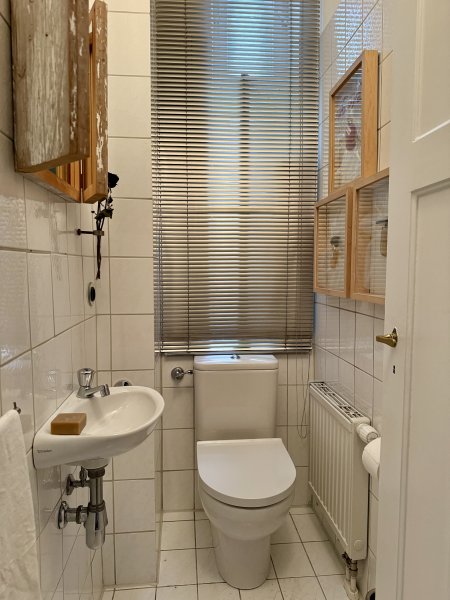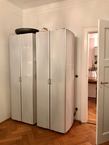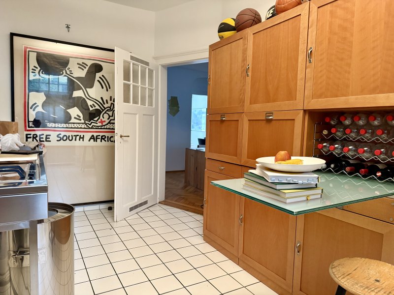 Sehr schönes, typisches Altbauzimmer, hochwertig neu möbliert, ca. 20 qm, Raumhöhe ca. 280 cm, massives Eiche- Fischgratparkett, weiße Wände mit Hohlkehle und Stuck, weiß lackierte Türen, 1großes Fenster, zeitgenössische Kunst. Die Wohnung hat 130 qm, aufgeteilt in 8 Räume (Essbereich, Schlafbereich, WG-Zimmer, Wohnbereich. Ankleide, Bad mit Tageslicht, separates WC mit Tageslicht, eine vollausgestattete Küche - Werkbank von Bulthaup - und einem kleinen Balkon zum Innenhof.
