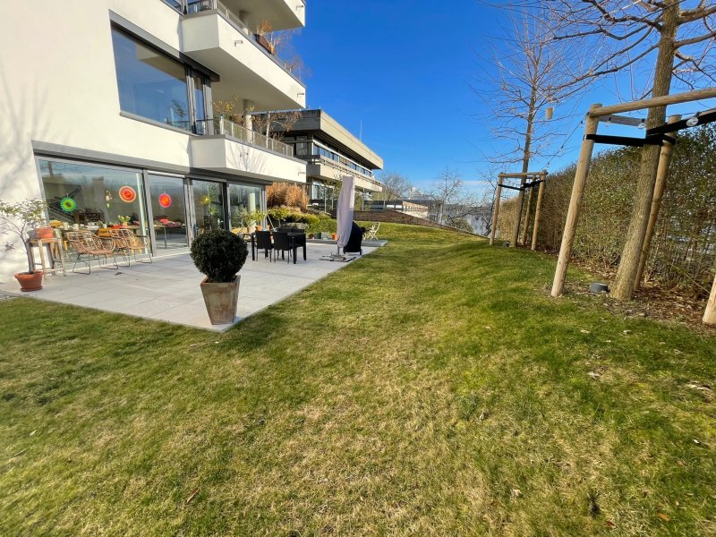Die Wohnung befindet sich in einem modernen Mehrfamilienhaus (Baujahr 2019) am nördlichen Hang der Stadt. Durch ihre südliche Ausrichtung hat die Wohnung den gesamten Tag über direkte Sonne.Die großzügige Terrasse (33,5 m2) geht nahtlos in den Gartenbereich über und vermittelt durch diese geschickte Öffnung den Eindruck einer doppelt so großen Fläche.