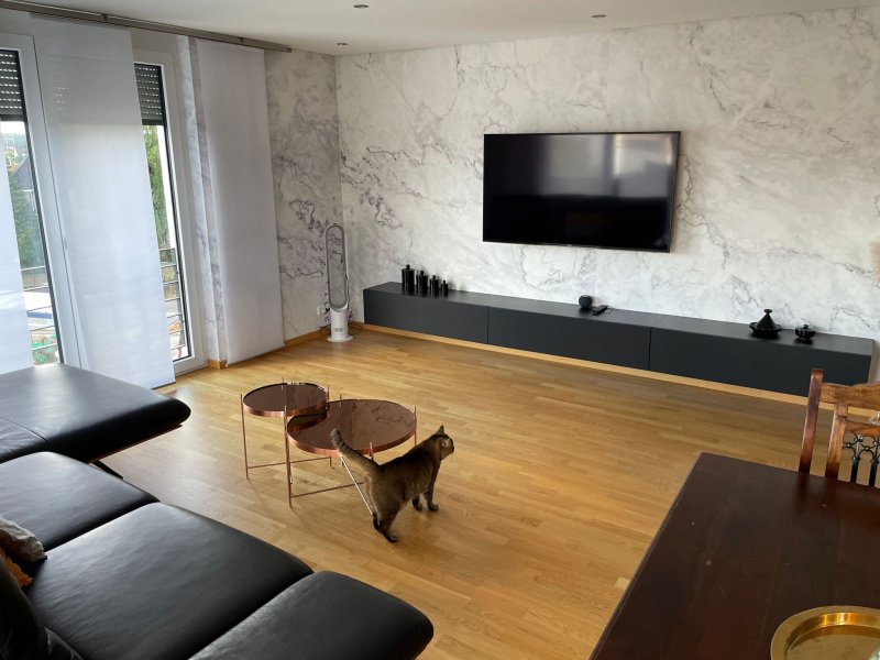 Diese neuwertige und helle Wohnung in der ersten Etage eines 6-Familienhauses verfügt über 4 Zimmer und besticht mit einer modernen Ausstattung. Eine Küche mit Spülmaschine, großem Kühlschrank, hochwertigem Induktionsherd ist bereit in der Miete mit inbegriffen. Das Bad verfügt über eine Badewanne sowie eine große Dusche und Doppelwaschbecken. Großer Balkon lädt zum Grillen ein. Ein Abstellraum (2m²) ist auch in der Wohnung.